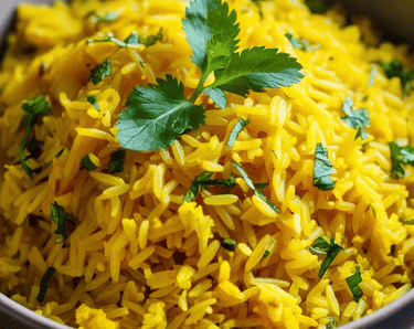 A fragrant and golden-hued rice dish with anti-inflammatory properties.
