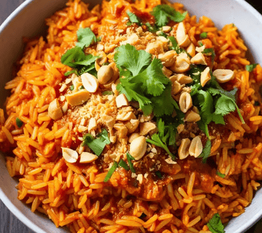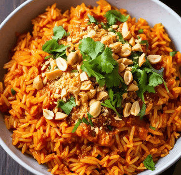 A bold and flavorful rice dish with a creamy peanut sauce and a spicy kick.